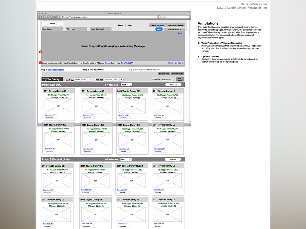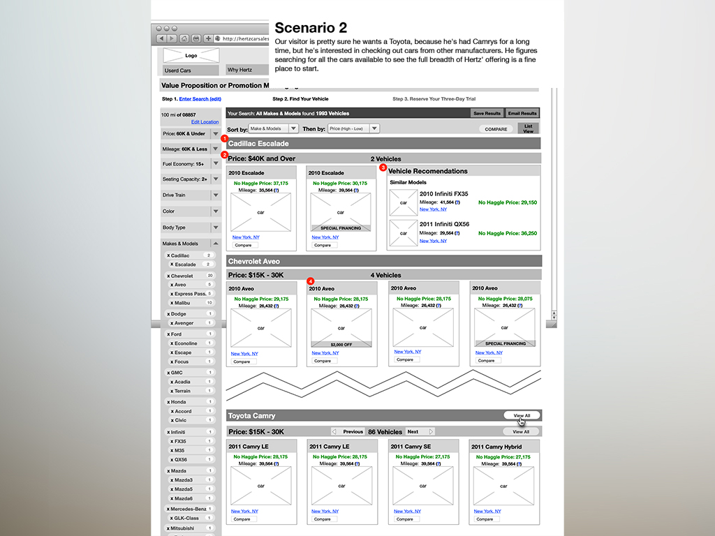 example UX story: {Customers} have full use of the vehicle for up to three days and if he/she chooses to purchase the vehicle, they simply keep the car and pay the listed price without any haggling and the rental fee is waived. If the customer decides not to purchase the car, the vehicle is returned to the renting location and the transaction is treated as a standard rental with a $XX per day rental fee.
